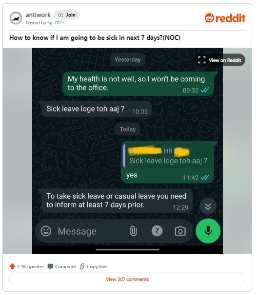 Manager's bizarre response to employee's sick leave request sparks laughter online