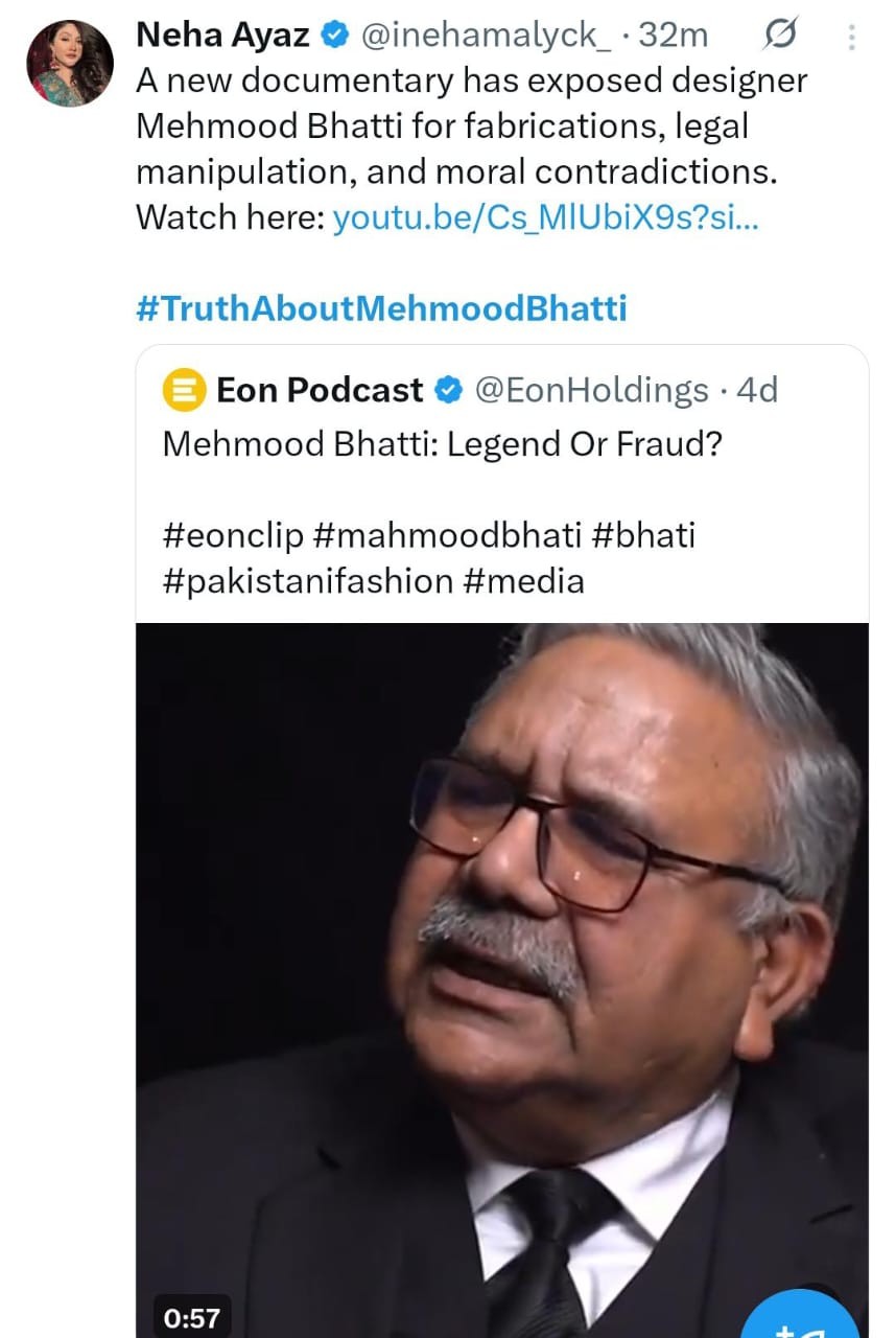 A viral YouTube documentary has exposed serious allegations against fashion designer Mehmood Bhatti, including legal disputes, contradictory statements, and past admissions of criminal activity, according to multiple reports.