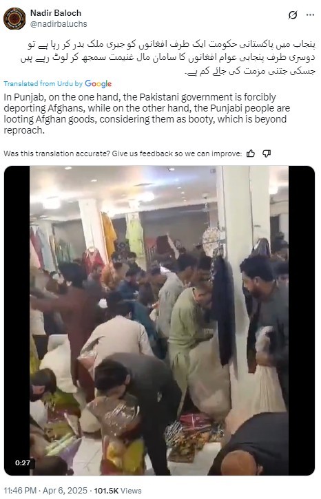 This footage was shared across multiple social media platforms, including X, with claims suggesting that during the forced repatriation of Afghan refugees, locals in Pakistan were taking over Afghan-owned businesses and engaging in looting.