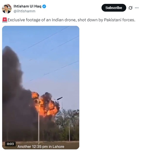 A separate viral video showed an Indian drone allegedly crashing in Lahore but it was later identified as footage from a drone incident in Ukraine on April 30.