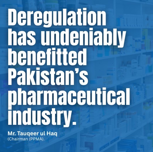 “Deregulation has undeniably benefitted Pakistan’s pharmaceutical industry,” says Mr. Tauqeer ul Haq, Chairman of the Pakistan Pharmaceutical Manufacturers’ Association (PPMA).