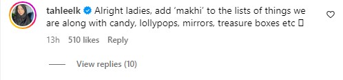 “Alright ladies, add ‘makhi’ to the lists of things we are along with candy, lollypops, mirrors, treasure boxes etc,” another user chimed in.