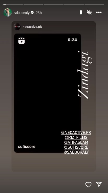 Actor Saboor Aly also shared the snippet of her upcoming collaboration with Atif Aslam on her Instagram story.