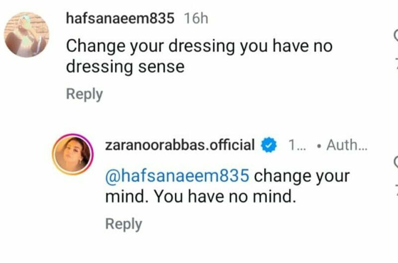 When another user taunted her about failing to pin her dress properly, Abbas shot back, advising the critic to change their own thinking and mindset, rather than focusing on her attire.