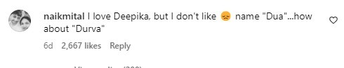 Despite the explanation, the couple received a wave of critical comments, with some followers questioning the choice. “I love Deepika, but I don't like the name 'Dua'... how about 'Durva'?” wrote one Instagram user.