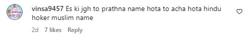 Another comment read, “After all this time, the name is Dua? Why? Are you guys from an Islamic country, or have you forgotten that you are Hindu?”