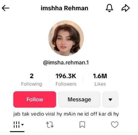 Amid the controversy, Imsha deactivated her TikTok account, with her bio reading, "Jab tak video viral hai maine ne ID off kar di hai [Until the video stops circulating, I’ve deactivated my account]."