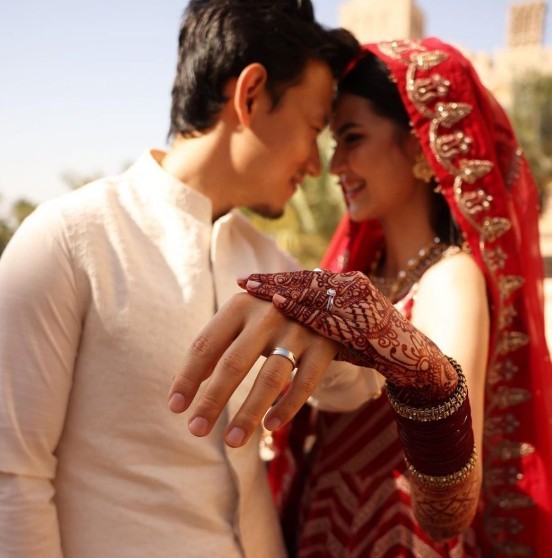 In May 2023, the graceful Madiha Imam exchanged vows with Indian producer Moji Basar in Dubai. The duo looks incredibly adorable together.