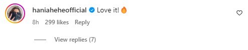 Hania responded with praise for Urfi's new look, leaving a comment saying, “Love it.”