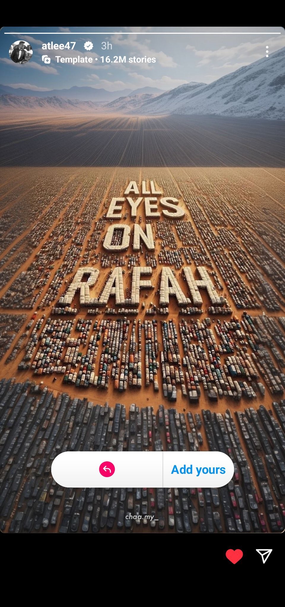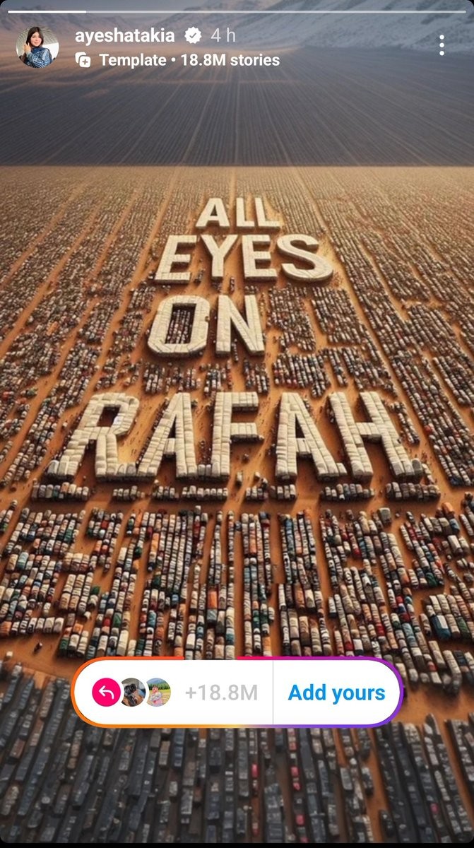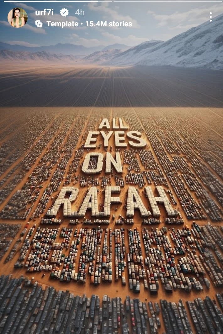The "All Eyes on Rafah" template has gone viral on social media, with over 22.2 million reshares on Instagram in less than 24 hours.
