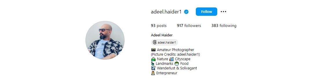 Adeel Haider has a modest online presence, with less than 1,000 followers on Instagram and less than 30 followers on Threads.