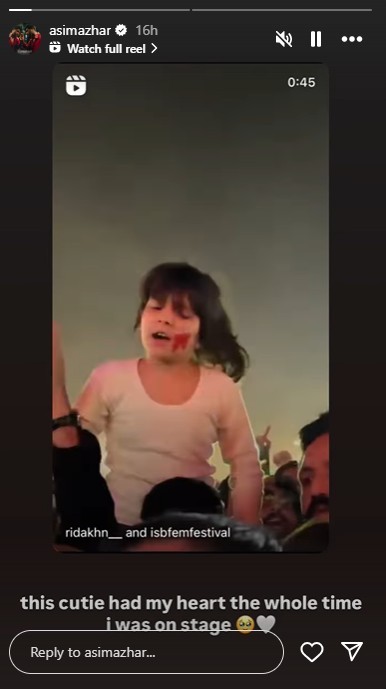 In an adorable moment, renowned singer Asim Azhar was left utterly charmed by a young fan’s infectious energy at his concert in Islamabad.