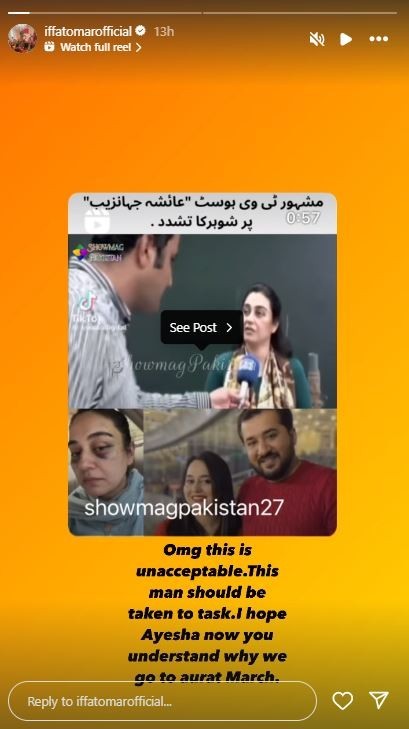 "This man should be taken to task. I hope Ayesha now you understand why we go to Aurat March," she said in her Instagram story.