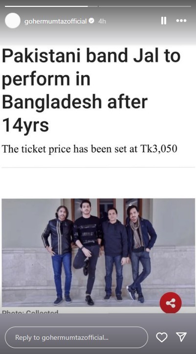 On Wednesday, he shared screenshots of the news headlines about Jal's upcoming concerts in Bangladesh on his Instagram account.