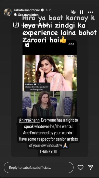 To which Saba replied. “Hira, you need experience in life to understand my point.”