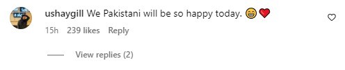 “We Pakistanis will be so happy today,” commented an Instagram user on Sonam Bajwa's post.