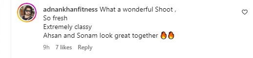 Ahsan showered praise on Sonam's Instagram post, commenting, “Absolutely amazing.”