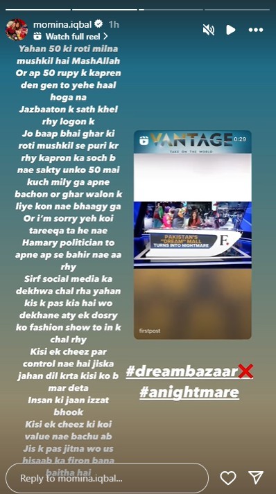 Renowned actor Momina Iqbal shared her views on the recent vandalism at a thrift store in Karachi, stating that amid rising inflation, people are left with few options to meet their needs.