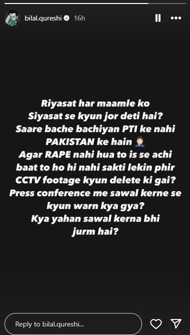 Renowned actor Bilal Qureshi criticised Chief Minister Punjab Maryam Nawaz Sharif for politicising the alleged rape incident at Punjab College Campus 10, which she stated was based on false information and never occurred.