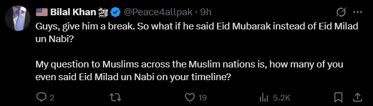 "Guys, give him a break. So what if he said Eid Mubarak instead of Eid Milad un Nabi? My question to Muslims across the Muslim nations is, how many of you even said Eid Milad un Nabi on your timeline?" an X user responded to trolls.