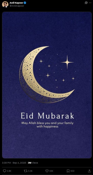 Bollywood star Anil Kapoor landed in the spotlight after posting “Eid Mubarak” to Muslims on X. While many appreciated the gesture, others were quick to ask which Eid he was referring to, with some jokingly replying “Ramazan Mubarak.”
