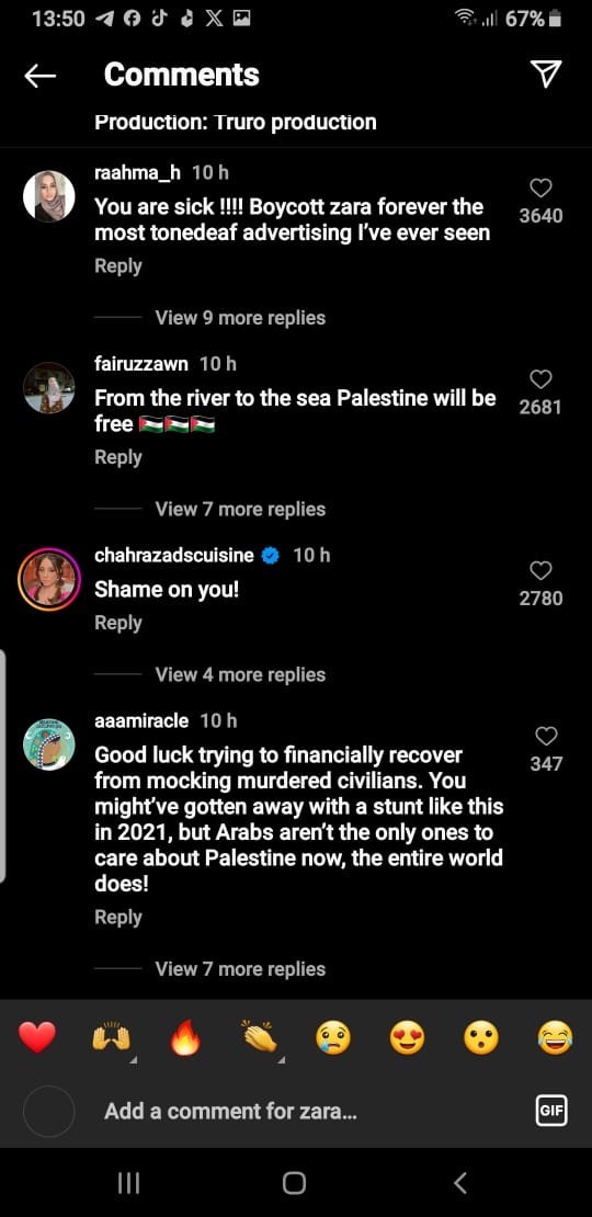 The controversy has led to a significant number of people calling for a boycott of Zara, a brand that was not previously associated with supporting Israeli Occupation.