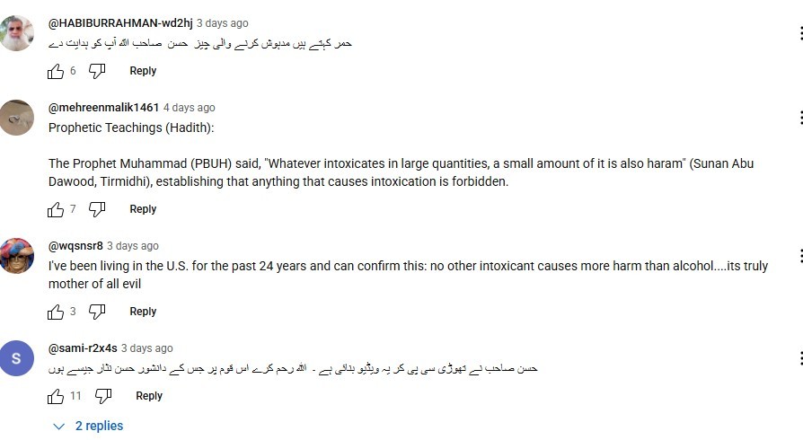 He also stated that clerics remain silent on the matter because they know the word alcohol is not explicitly mentioned in the Holy Quran. However, many people disagreed with Nisar and cited multiple verses and Hadith references that clearly mention alcohol or khumar.