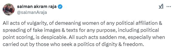 “All acts of vulgarity, the demeaning of women of any political affiliation, and the spreading of fake images and texts for political point-scoring are despicable,” he stated firmly.