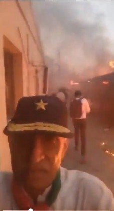 A video allegedly showing Brigadier (R) Javed Akram at the protest site on May 9 circulated on social media. In the video, he can be seen filming himself at Jinnah House while the destruction and fires caused by the protestors are visible in the background, with a PTI flag draped around his neck.