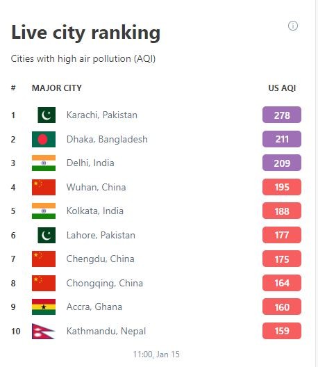 Karachi briefly became the most polluted city in the world on Monday with an air quality index (AQI) of 278, according to the Swiss Company IQAir that monitors air quality.