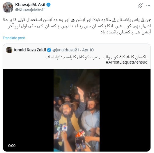 "Those who have any other option besides Pakistan and express their willingness to use it, such people do not have to live in Pakistan. The soil of Pakistan is our first and last option," Asif wrote in his post.