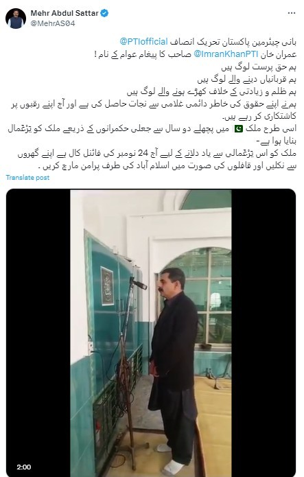 “Today, November 24th is the final call to remind the country of this plunder. Come out of your homes and march peacefully in convoys towards Islamabad,” his post read on X.