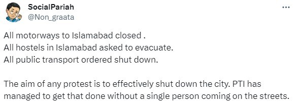Earlier, the Islamabad administration ordered the evacuation of all student hostels in the city on Friday. Meanwhile, the Punjab government imposed Section 144 across the province from November 23 to November 25, banning all protests, gatherings, rallies, sit-ins, and similar activities.
