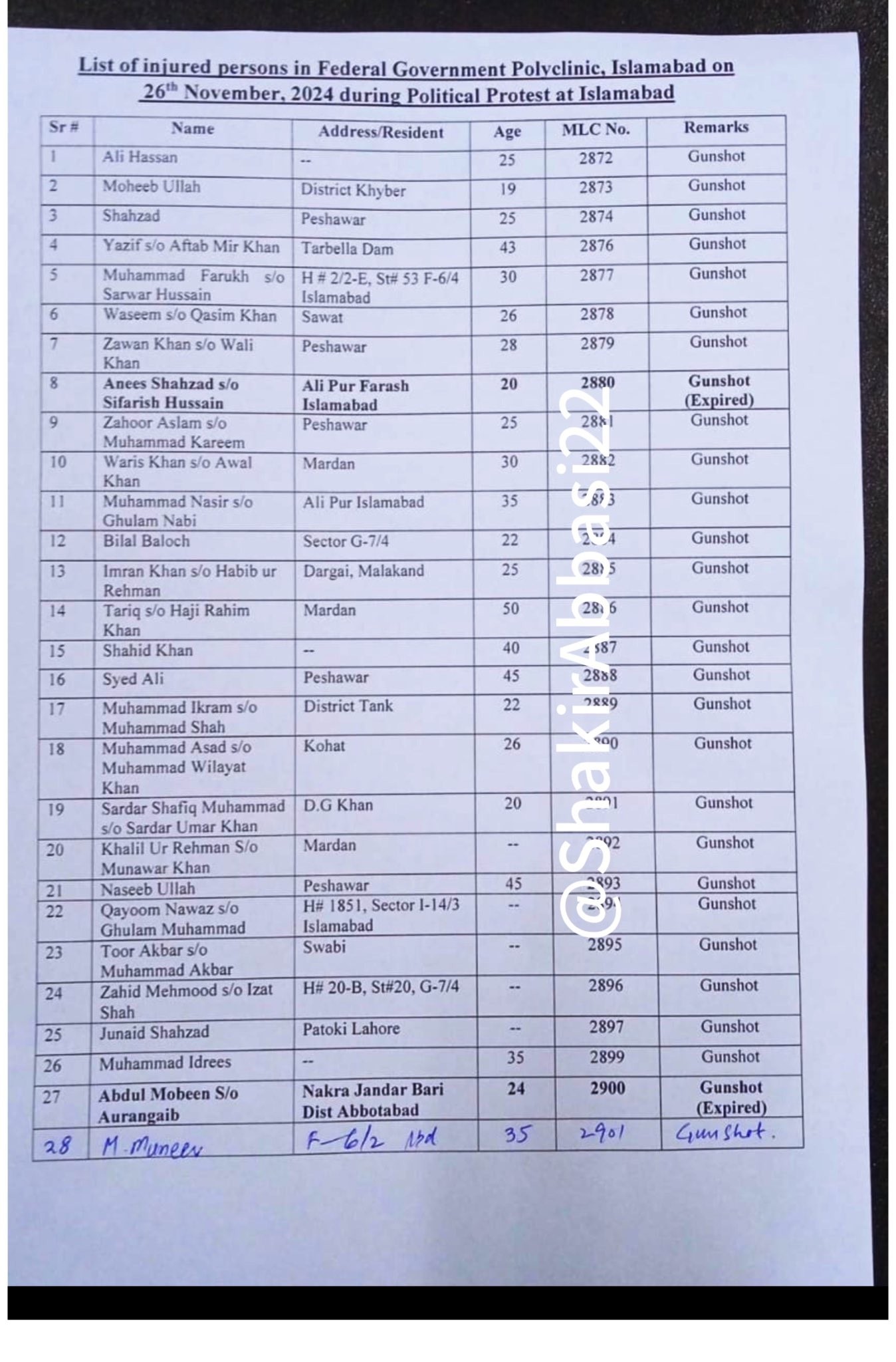 Pakistan Tehreek-e-Insaf (PTI) shared a list of its workers who were k!lled or injured during a large-scale security operation in Islamabad.
