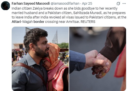 Emotional scenes were witnessed at the Wagah border as many were distressed by the sudden separation from their loved ones, as the Indian government falsely accused Pakistan of involvement in the Pahalgam attack, leading to innocent civilians suffering the consequences of its actions.