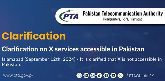 The Pakistan Telecommunication Authority (PTA) on Thursday issued a clarification related to Social media platform X, formerly Twitter, access for users across Pakistan.