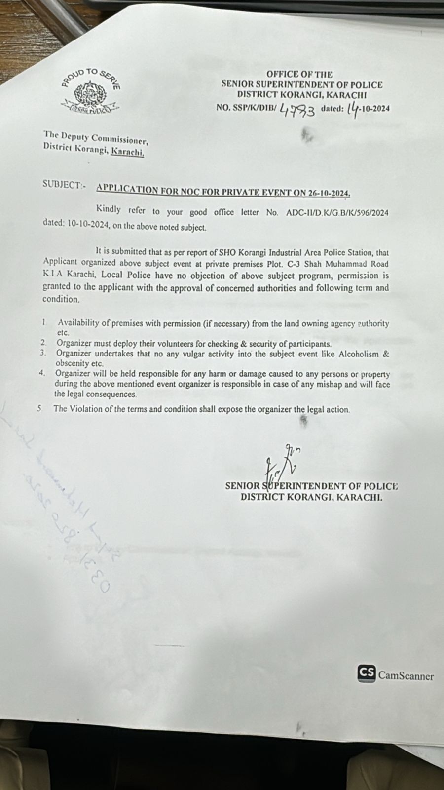 As per details, Senior Superintendent of Police (SSP) office was approached for permission of a dance party in Korangi on October 14.