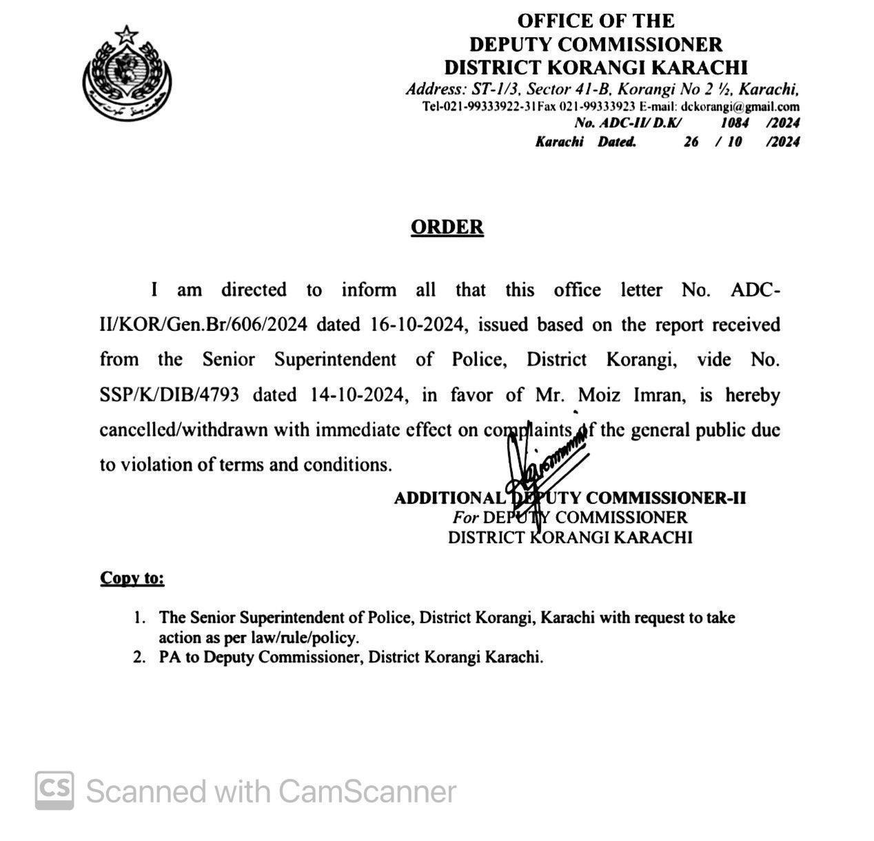 When local media alerted the Korangi Industrial Area SHO, he allegedly turned off his phone, advising media representatives to "remain silent," stating, “The permit came from the DC and SSP Korangi; what can I do?”