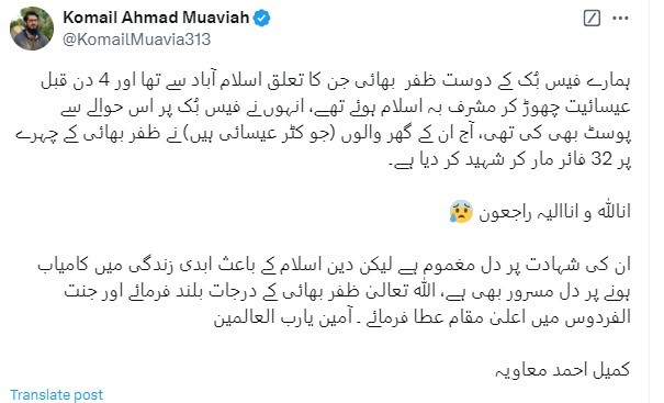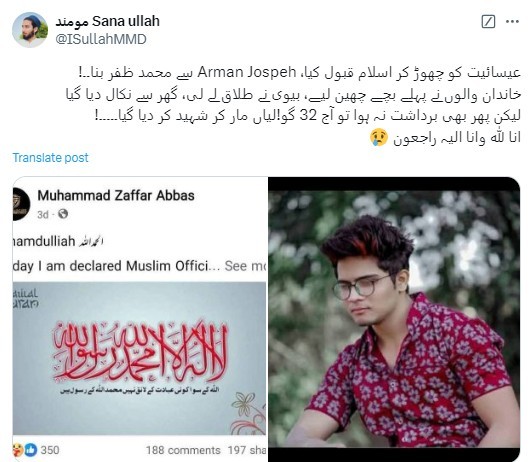 Abbas' Facebook friend, Komal Ahmad Moavia, brought attention to the tragic incident, stating that his family was deeply Christian and disapproved of his conversion.