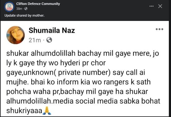 Missing siblings Ayaan and Anabiya found from N. Nazimabad, confirms mother