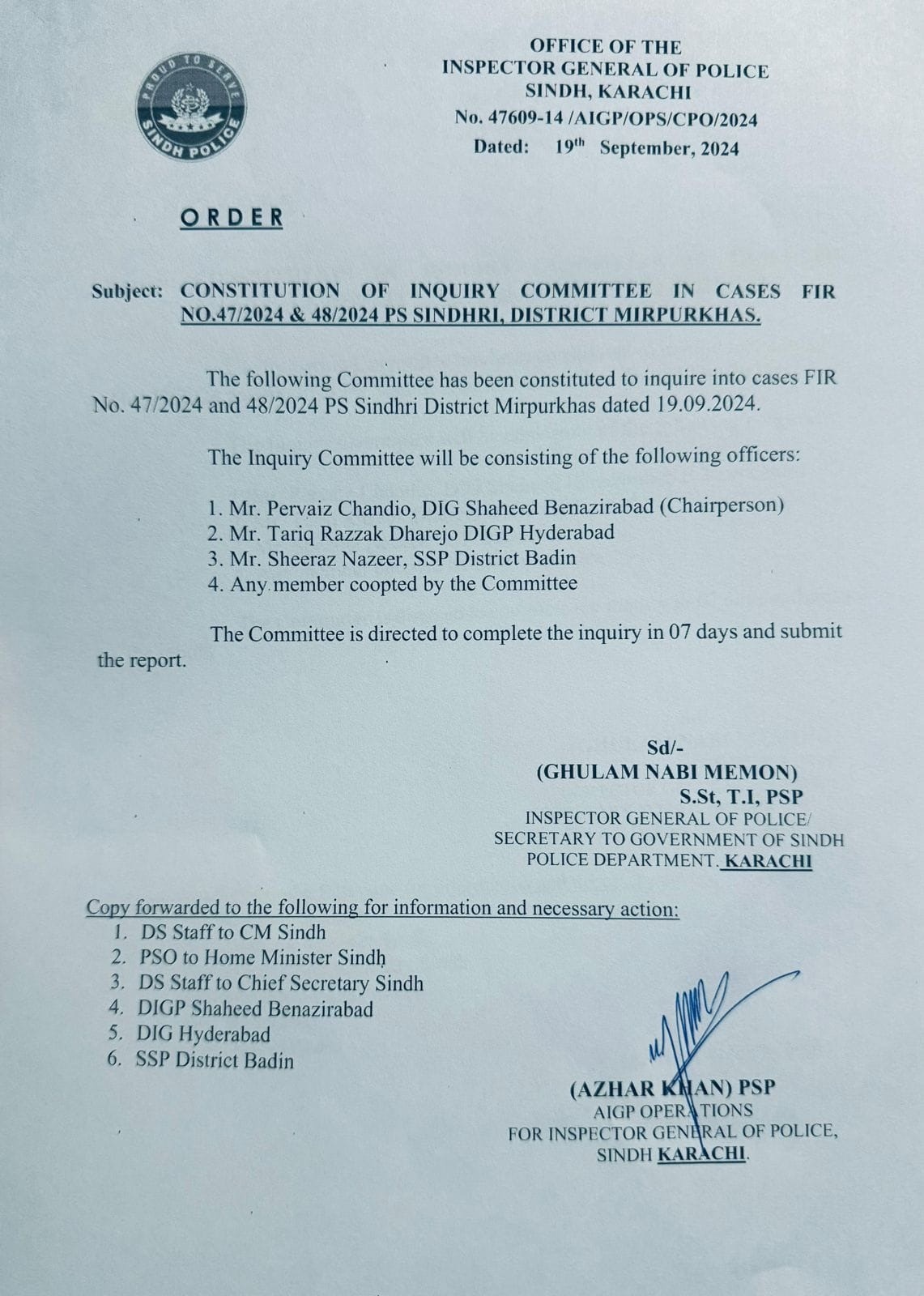 In response to these events, Sindh's Interior Minister, Zia-ul-Hassan Lanjhar, contacted the IGP Sindh, leading to the formation of the investigative committee. The committee has been tasked with submitting a report within seven days.