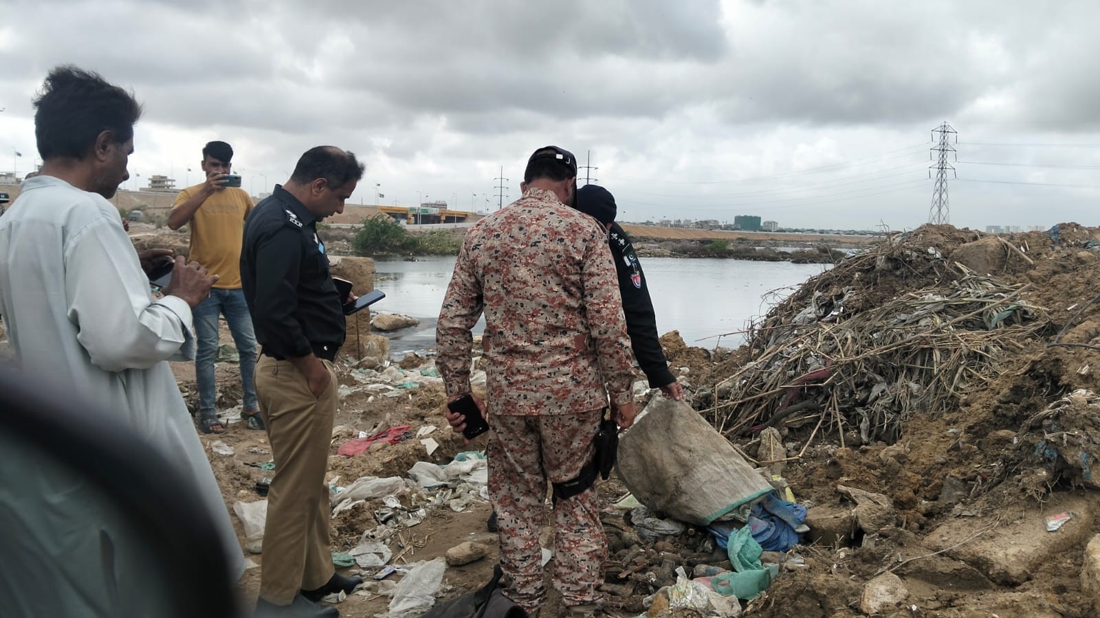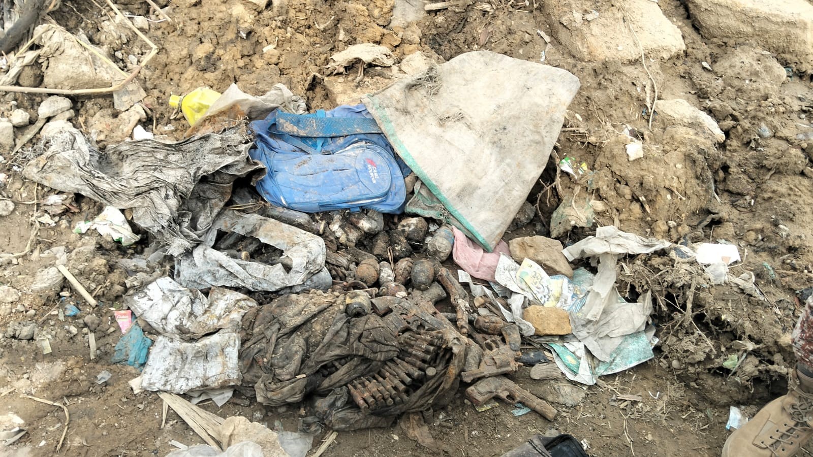 While building the protective bund, the weapons and grenades were discovered at a point along the Malir river.