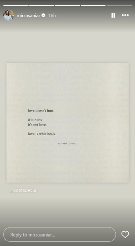 "If love hurts, it's not love:" Sania Mirza shares cryptic post on Instagram