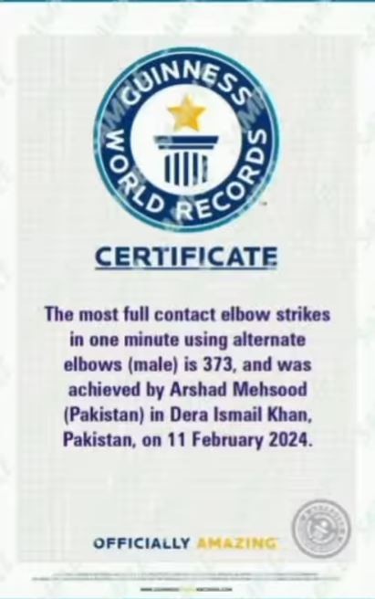 Mehsood achieved an astonishing 373 elbow strikes in just one minute, surpassing Sharma's record of 334.
