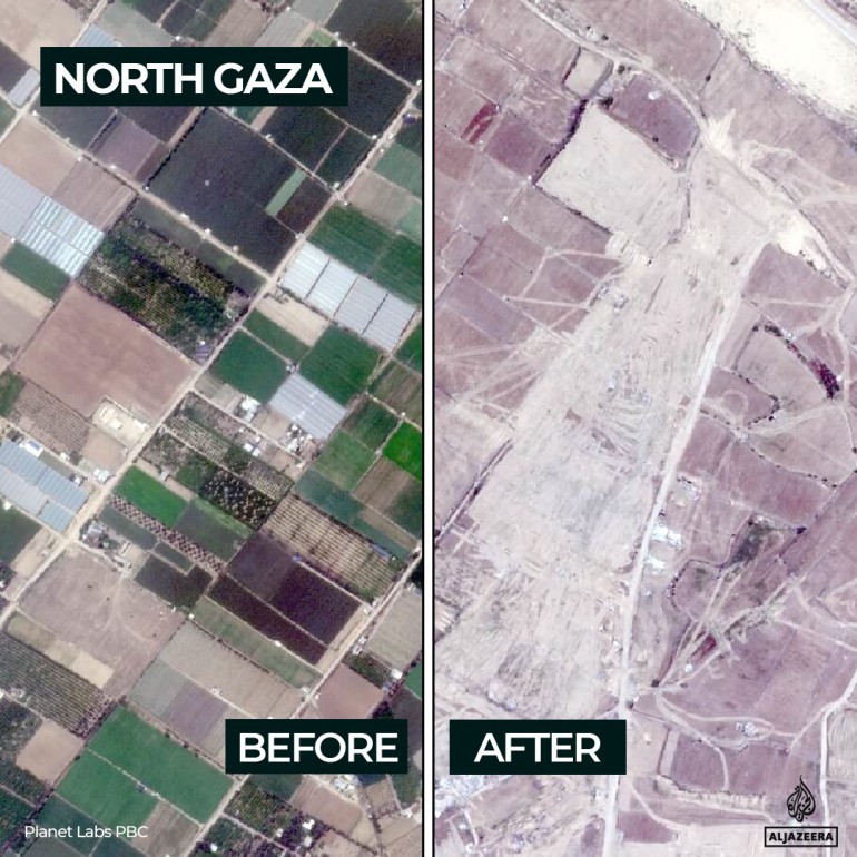 Before and after satellite images showed the devastating impact of Israeli attacks on the once-fertile regions of Beit Lahiya.