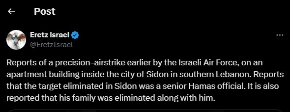 Israel's military last targeted Sidon on February 17, resulting in the death of Muhammad Shahine, a top Hamas official.