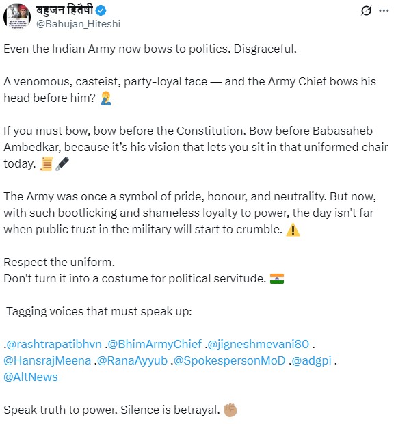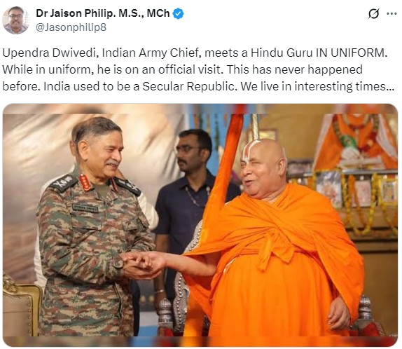 This is reportedly the first time an Indian Army chief has made a religious visit in uniform, raising concerns among critics about the growing religious influence within state institutions under Prime Minister Narendra Modi’s government.