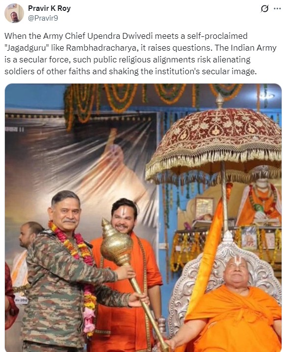 However, on Thursday, Jagadguru Rambhadracharya addressed the media and confirmed that General Dwivedi attended one of his events and held a conversation with him.