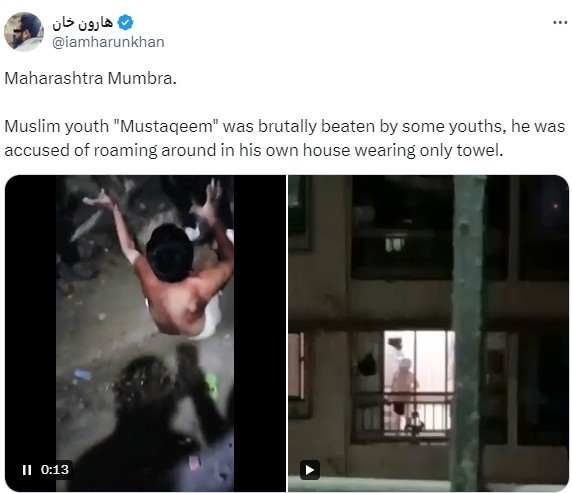 In a disturbing incident in India’s Maharashtra, a Muslim man was physically assaulted by a mob simply for walking around in his own home wearing a towel. The shocking video of the assault went viral.