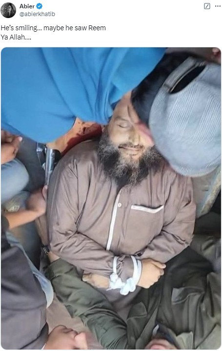 A picture widely shared by on pro-Palestinian accounts on X, showed Khaled Nabhan lying on a stretcher, hands tied, surrounded by mourners.